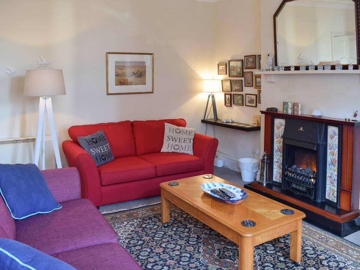 Living room: with electric coal-effect fire, 40" Freeview TV, DVD player, double sofa bed and Amazon Echo with Amazon Music Unlimited